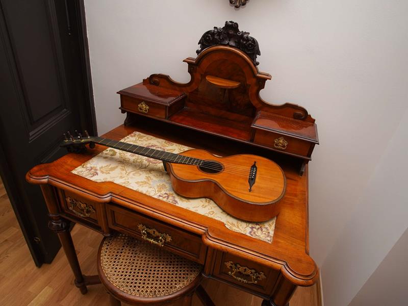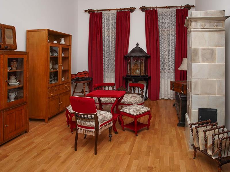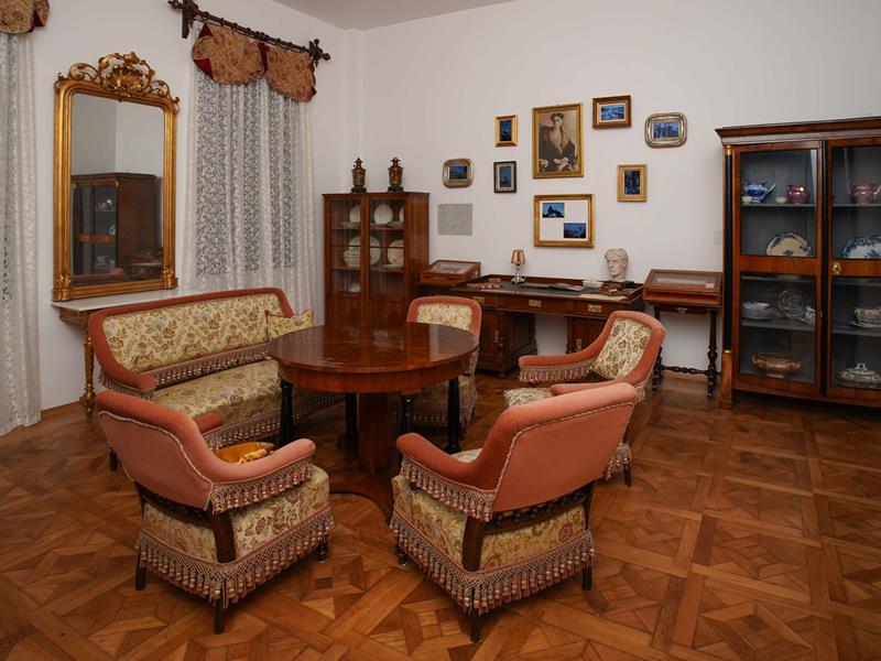 Prvi kat kuće zauzima stan Brlić koji se sastoji od dva salona, knjižnice, spavaće sobe, dječje sobe koji je autentičan te sadrži sav namještaj i inventar iz vremena kada je živjela i pisala Ivana Brlić Mažuranić.